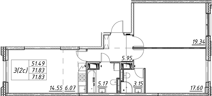 Цена за м2: 305 000₽- Отделка: Подчистовая
