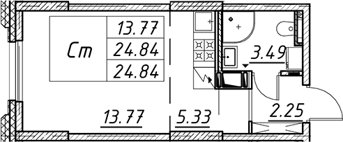 Цена за м2: 346 100₽- Отделка: Подчистовая