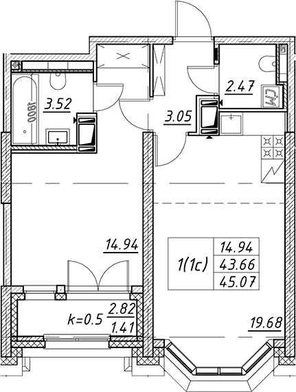 Цена за м2: 304 940₽- Отделка: Подчистовая