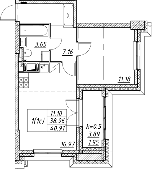 - S общая: 38.96 м2