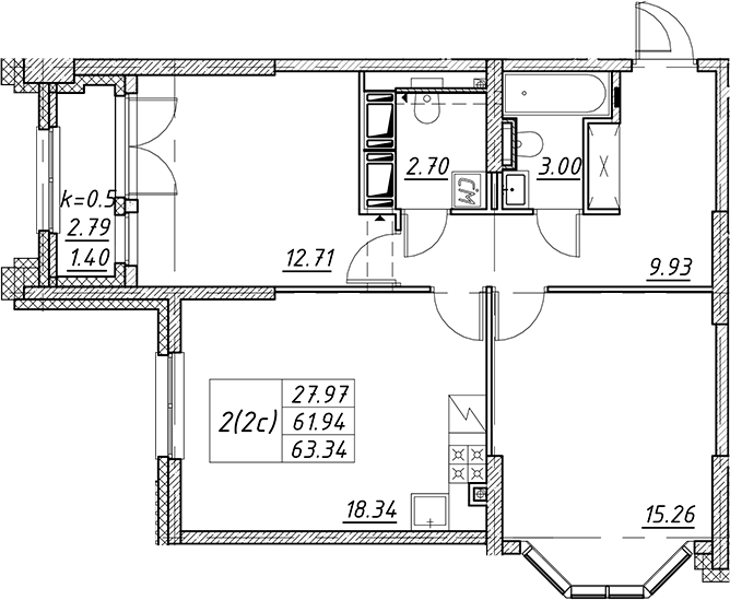 - S общая: 61.94 м2
