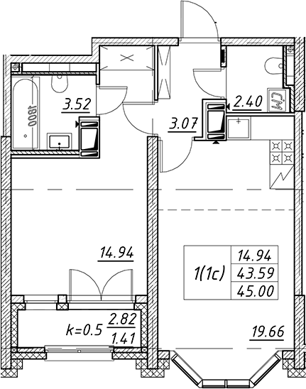 Цена за м2: 307 226₽- Отделка: Подчистовая