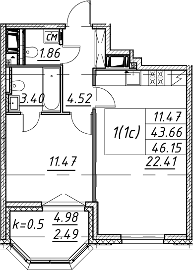 Цена за м2: 342 373₽- Отделка: Подчистовая