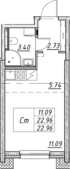 - S общая: 22.96 м2