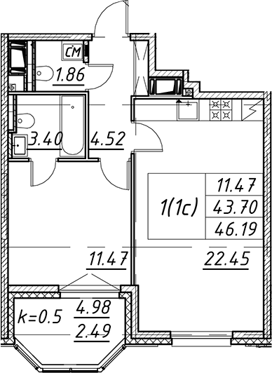 Цена за м2: 344 575₽- Отделка: Подчистовая