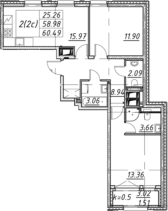Цена за м2: 331 269₽- Отделка: Подчистовая