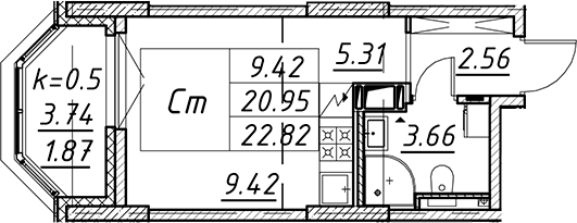 - S общая: 20.95 м2