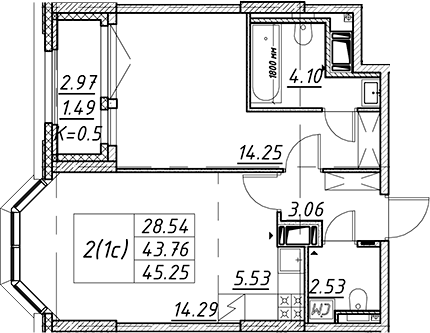 Цена за м2: 348 578₽- Отделка: Подчистовая