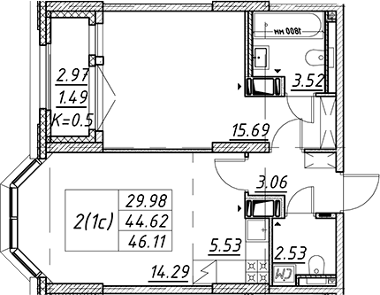 Цена за м2: 347 840₽- Отделка: Подчистовая