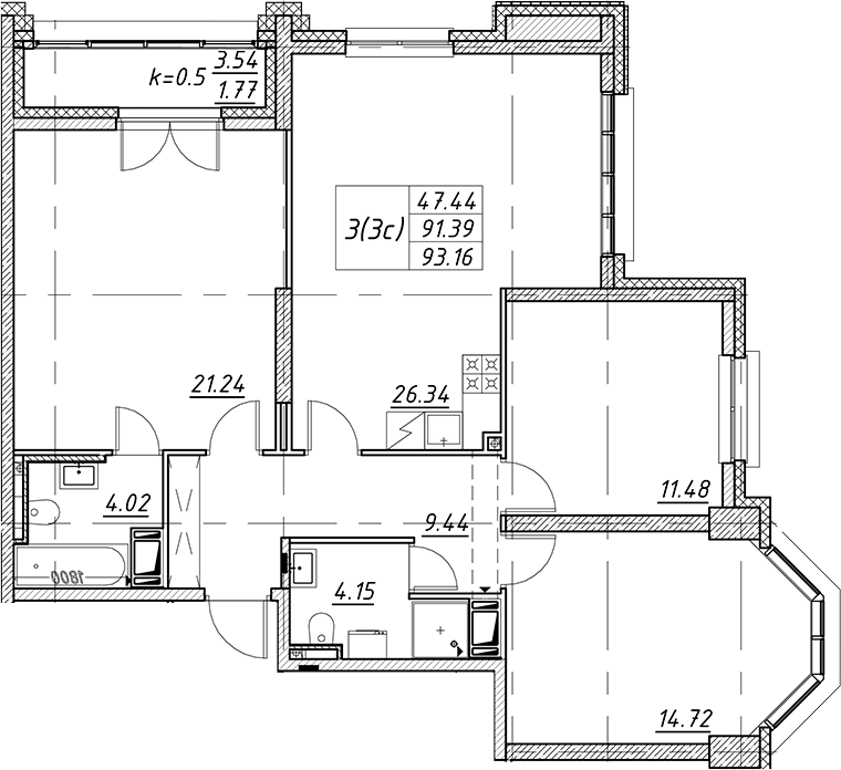 Цена за м2: 328 746₽- Отделка: Подчистовая