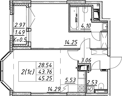 Цена за м2: 350 853₽- Отделка: Подчистовая