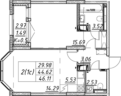 Цена за м2: 350 114₽- Отделка: Подчистовая
