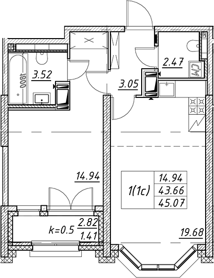 Цена за м2: 315 882₽- Отделка: Подчистовая