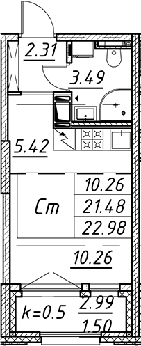 - Комнат: Студия