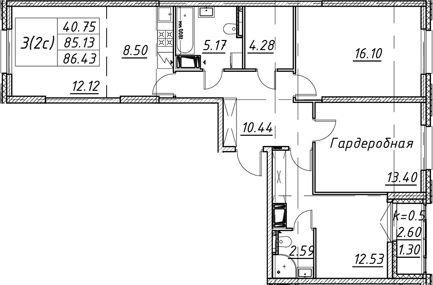 - S общая: 85.13 м2