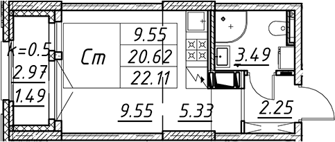 - Комнат: Студия
