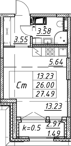 - Комнат: Студия