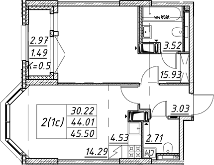 Цена за м2: 356 163₽- Отделка: Подчистовая