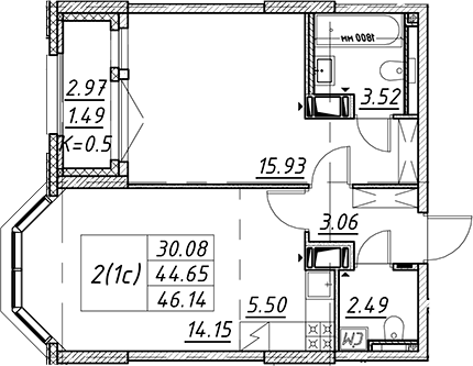 Цена за м2: 355 480₽- Отделка: Подчистовая