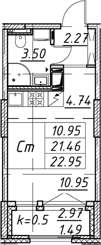 - S общая: 21.46 м2