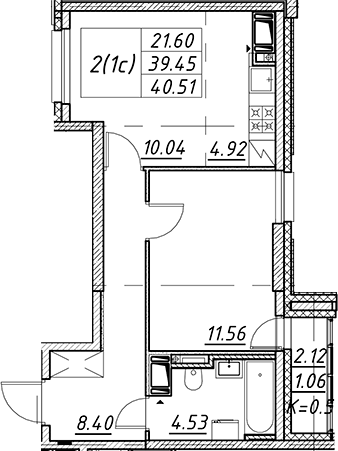 - S общая: 39.45 м2