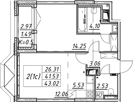 Цена за м2: 357 481₽- Отделка: Подчистовая