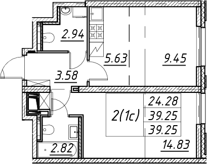 Цена за м2: 284 500₽- Отделка: Подчистовая