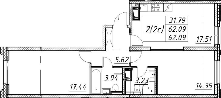 Цена за м2: 289 800₽- Отделка: Подчистовая