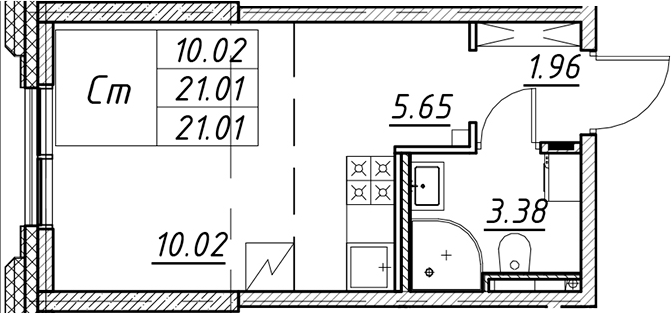 - S общая: 21.01 м2
