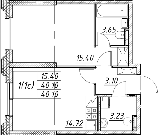 - S общая: 40.1 м2