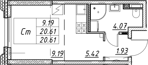 - S общая: 20.61 м2