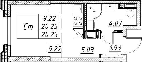 - Комнат: Студия