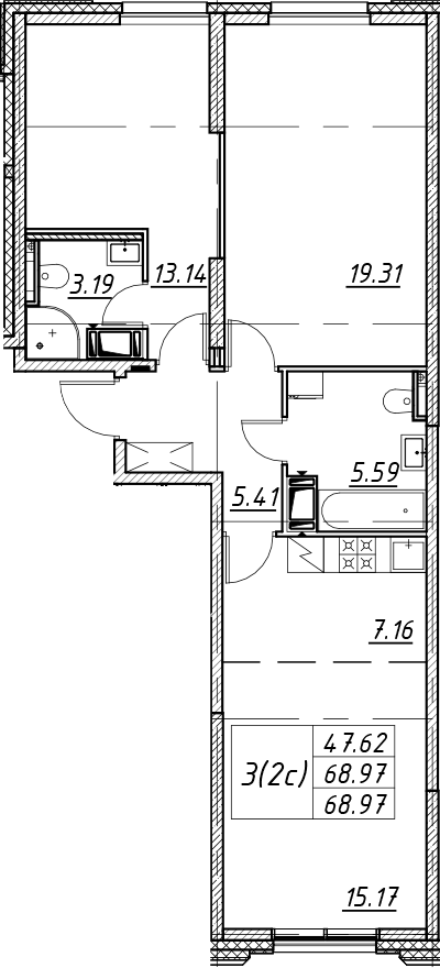 Цена за м2: 256 200₽- Отделка: Подчистовая