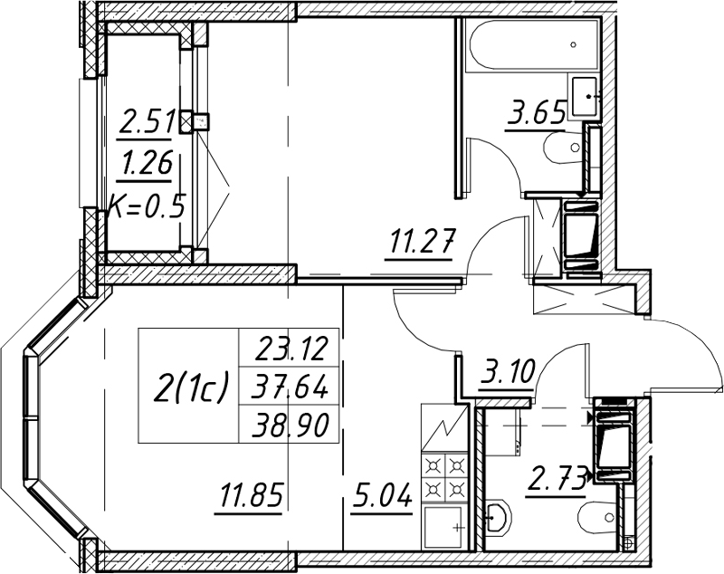 - S общая: 37.64 м2
