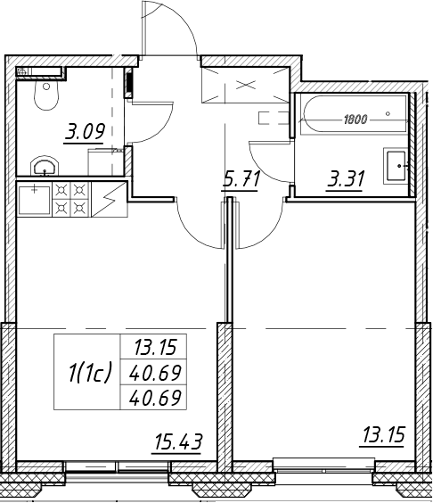 - S общая: 40.69 м2
