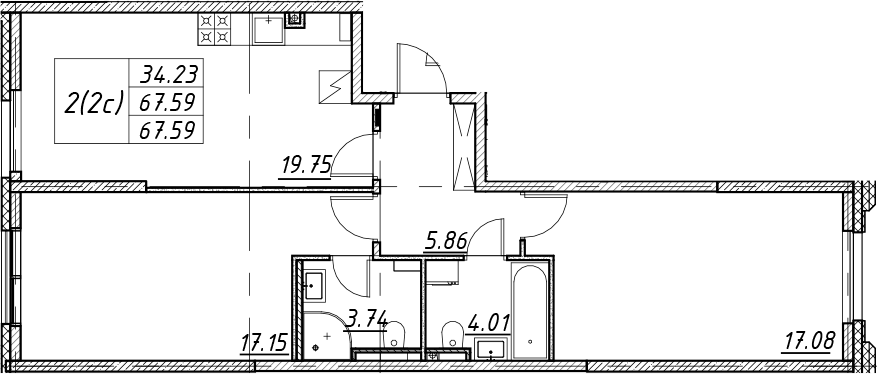 Цена за м2: 252 900₽- Отделка: Подчистовая