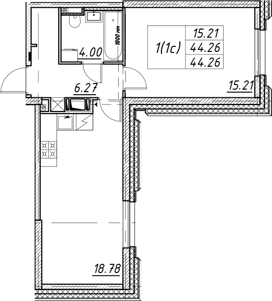 - S общая: 44.26 м2