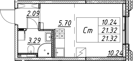 - S общая: 21.32 м2