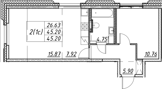- S общая: 45.2 м2