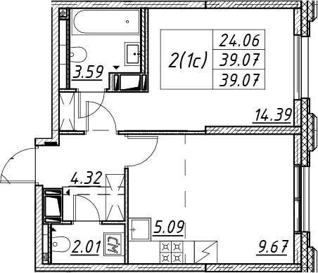 Цена за м2: 282 900₽- Отделка: Подчистовая