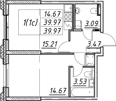 Цена за м2: 297 400₽- Отделка: Подчистовая