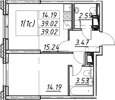 - S общая: 39.02 м2