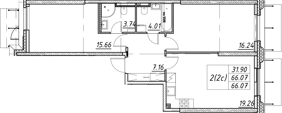 - S общая: 66.07 м2