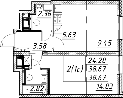 Цена за м2: 288 200₽- Отделка: Подчистовая