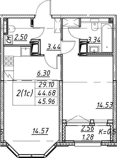 Цена за м2: 298 617₽- Отделка: Подчистовая