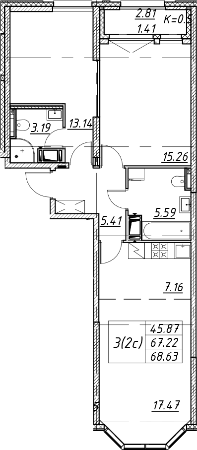 Цена за м2: 288 017₽- Отделка: Подчистовая