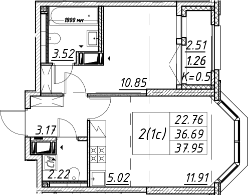 Цена за м2: 330 369₽- Отделка: Подчистовая