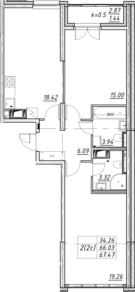 Цена за м2: 302 864₽- Отделка: Подчистовая
