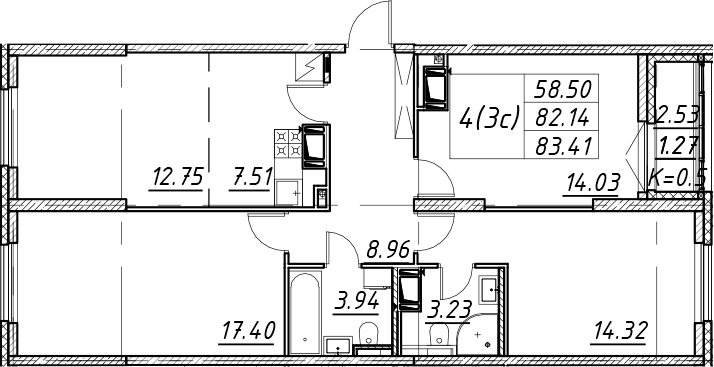 Цена за м2: 302 811₽- Отделка: Подчистовая
