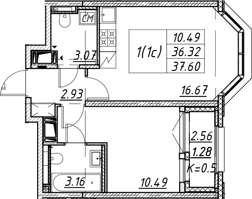 - S общая: 36.32 м2